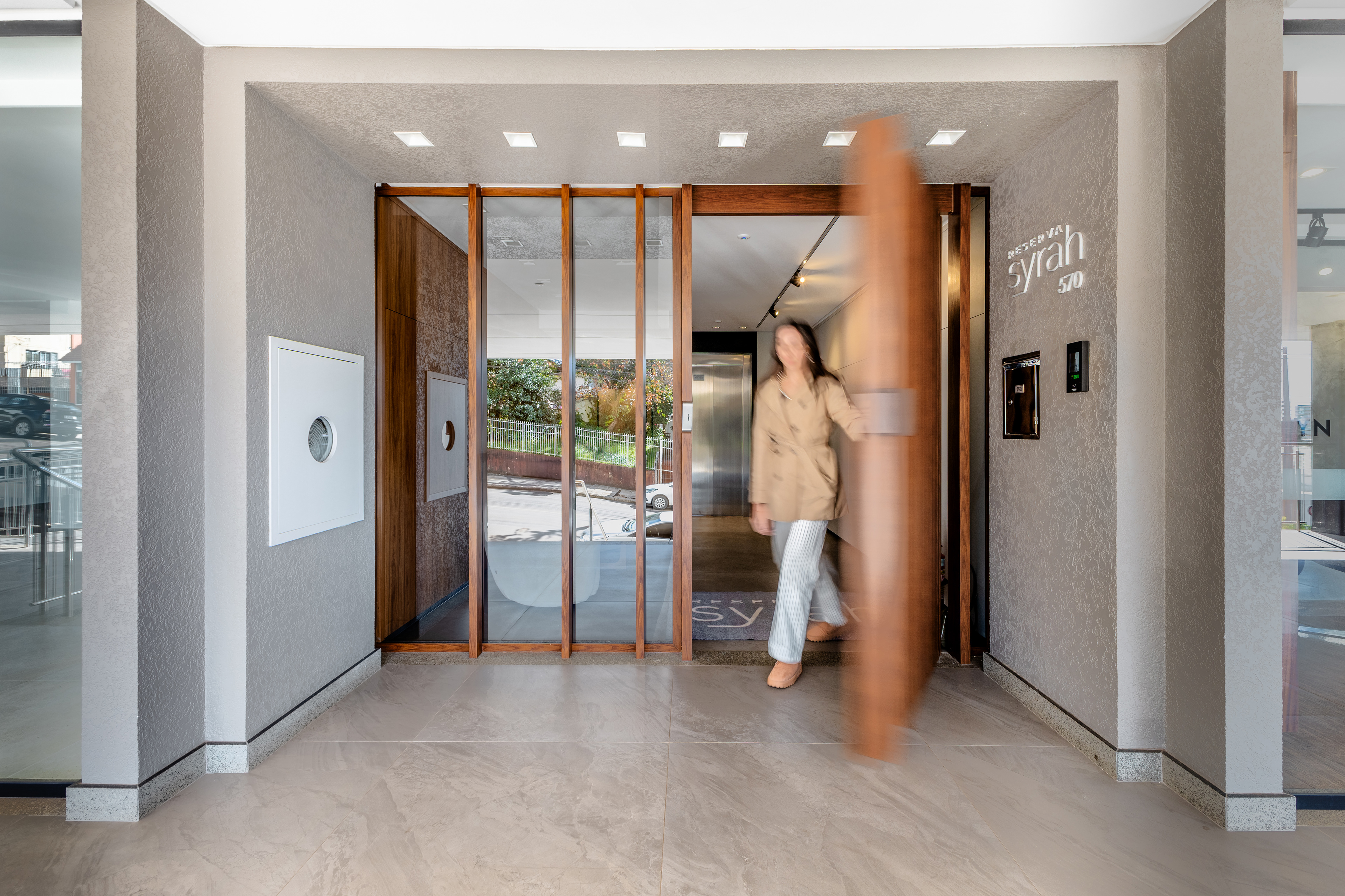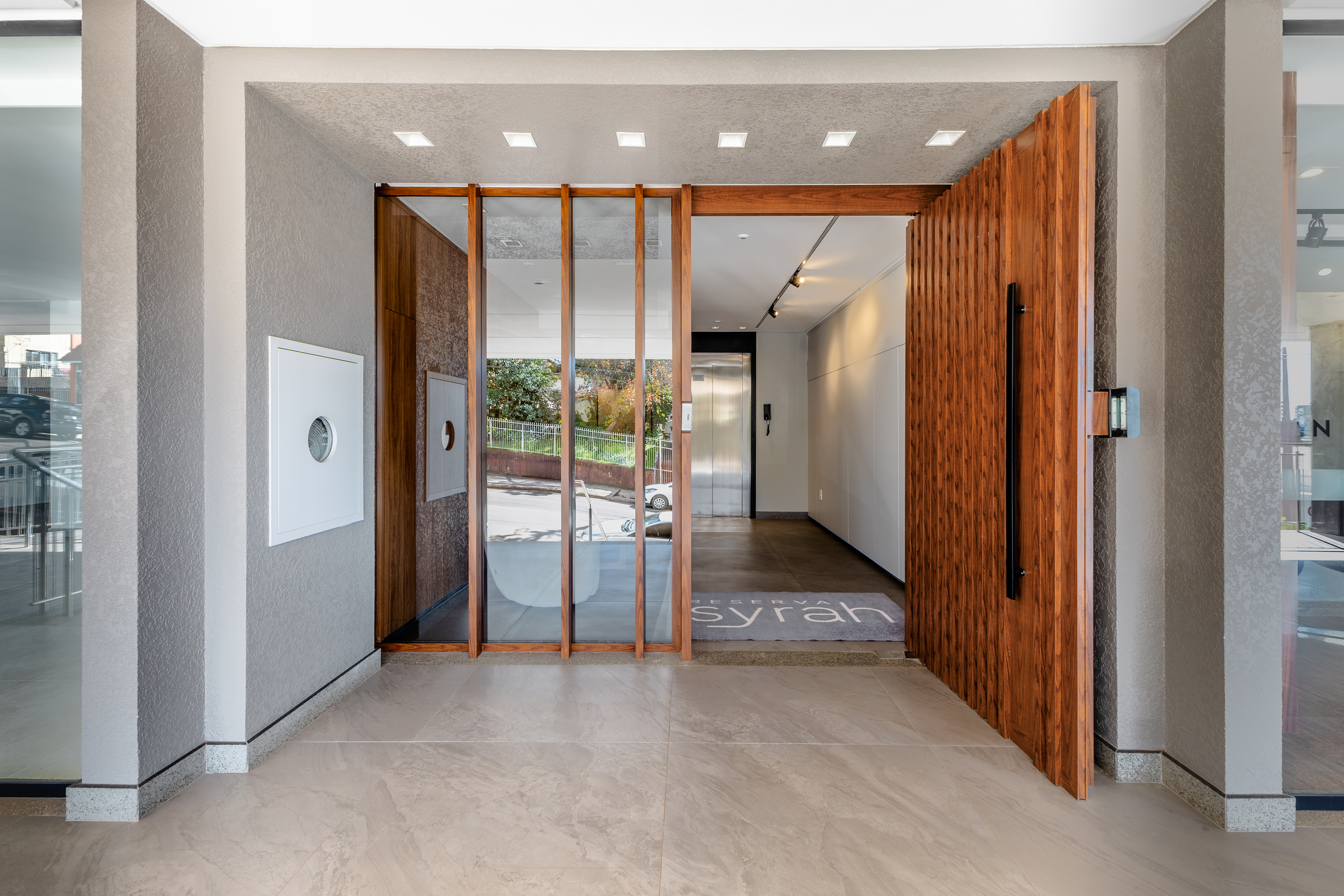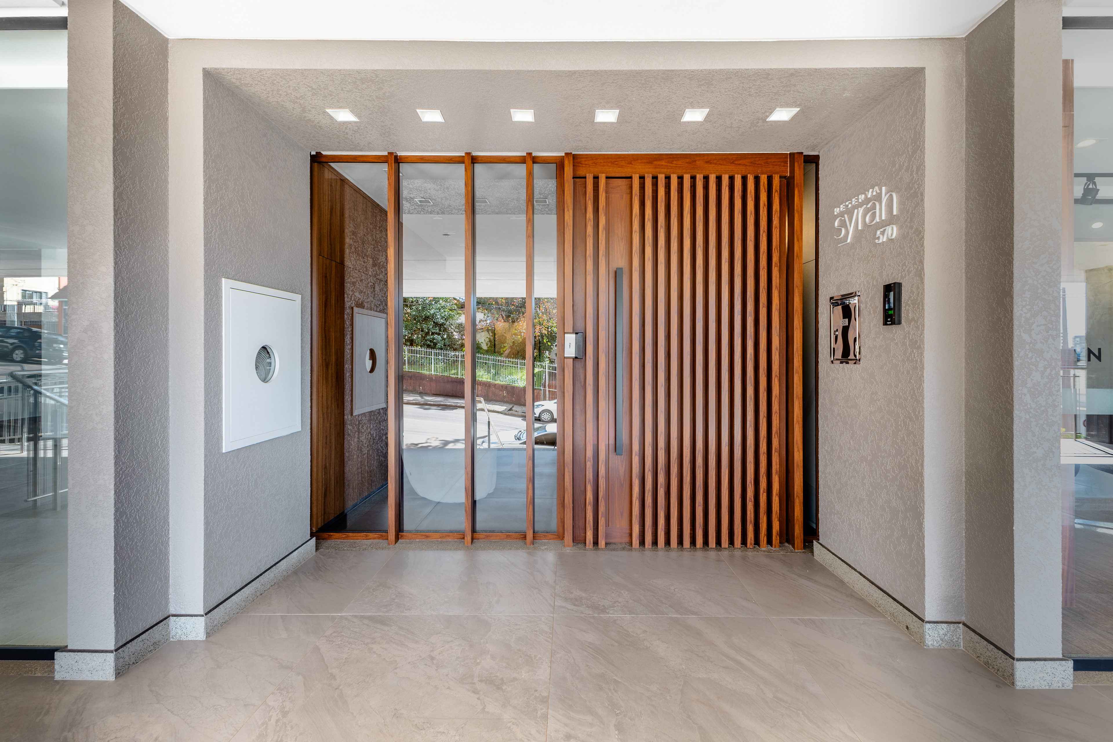 Hall de entrada de empreendimento residencial, localizado em Pato Branco - PR.