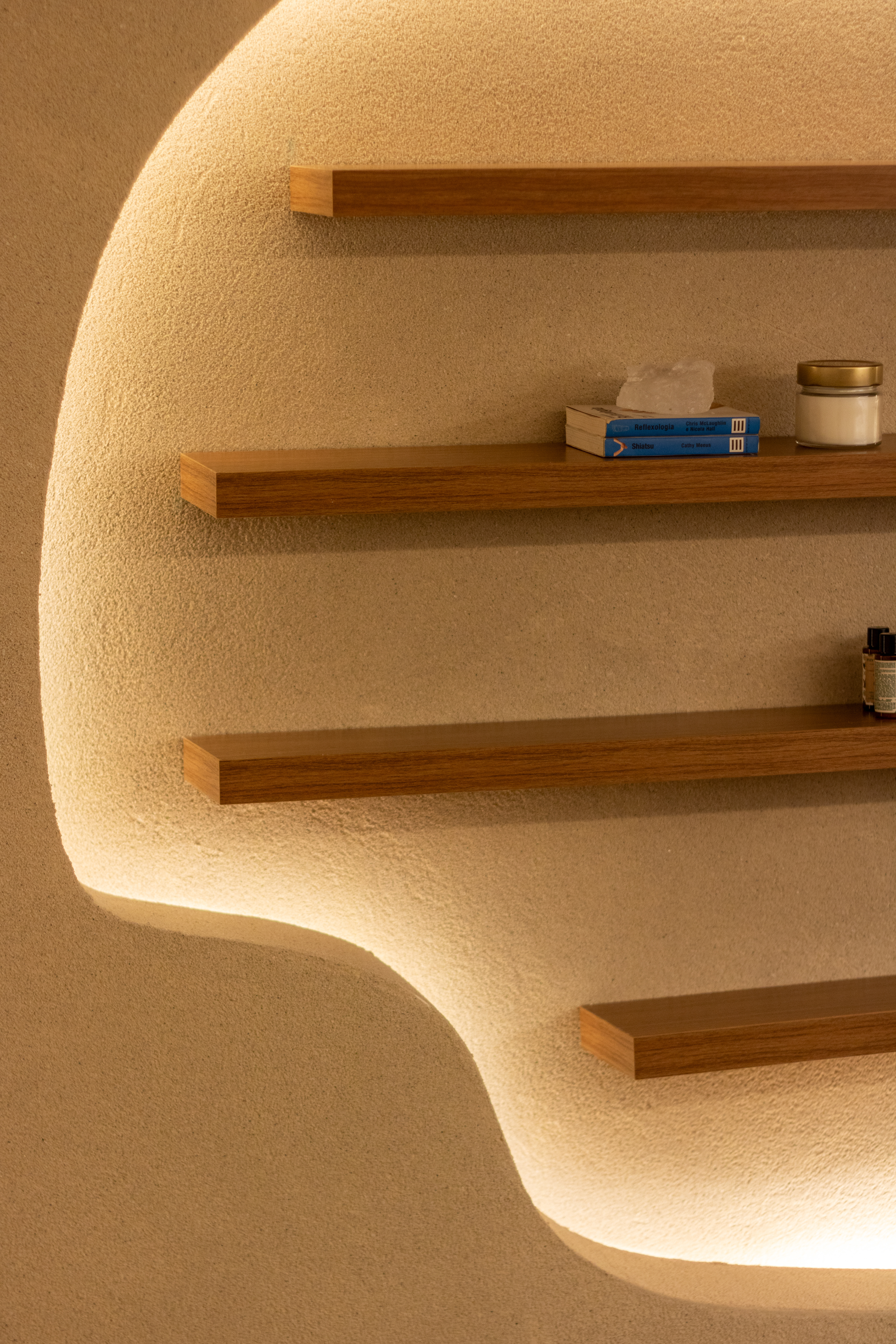 O layout das salas e áreas comuns foi planejado para guiar o usuário de forma intuitiva e progressiva à experiência da flutuação, já os materiais utilizados reforçam a proposta contemporânea e tecnológica, ao mesmo tempo que garantem a funcionalidade do espaço.